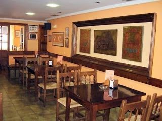 Nada más entrar, a la izquierda se encontraba la barra, y frente a ella dos hileras de mesas. Al fondo se encontraba el comedor, pero como era pequeño y estaba lleno, la gente estaba comiendo en las mesas de la zona de bar-cafetería (donde nos tocó a nosotros también). La sala tenía una decoración corriente, al estilo mesón, con mesas y sillas de madera de esas que pesan un montón, varios cuadros en las paredes y una tele bastante grande donde todo el mundo estaba viendo a Alonso, jeje.