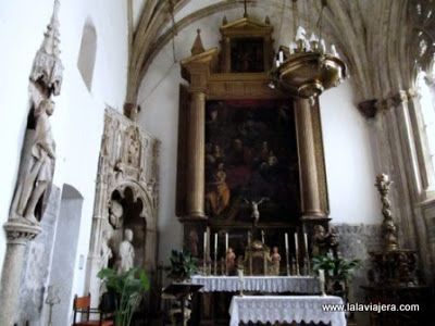 Consta de tres naves, crucero y cabecera. Tiene planta de cruz latina y ábside poligonal, cubierta por bóvedas de crucería. Dignos de mención son los grandes rosetones que combinan tracería gótica y lazos mudéjares, así como las magníficas puertas de acceso al templo, la fantástica reja de hierro forjado del siglo XV (obra de Fray Francisco de Salamanca y Fray Juan de Ávila), y los sepulcros en posición orante de D. Alfonso de Velasco y su esposa, Dª Isabel de Cuadros, obra gótico hispano flamenca de Anequín Egas en el siglo XV, situados en la Capilla de Santa Ana.